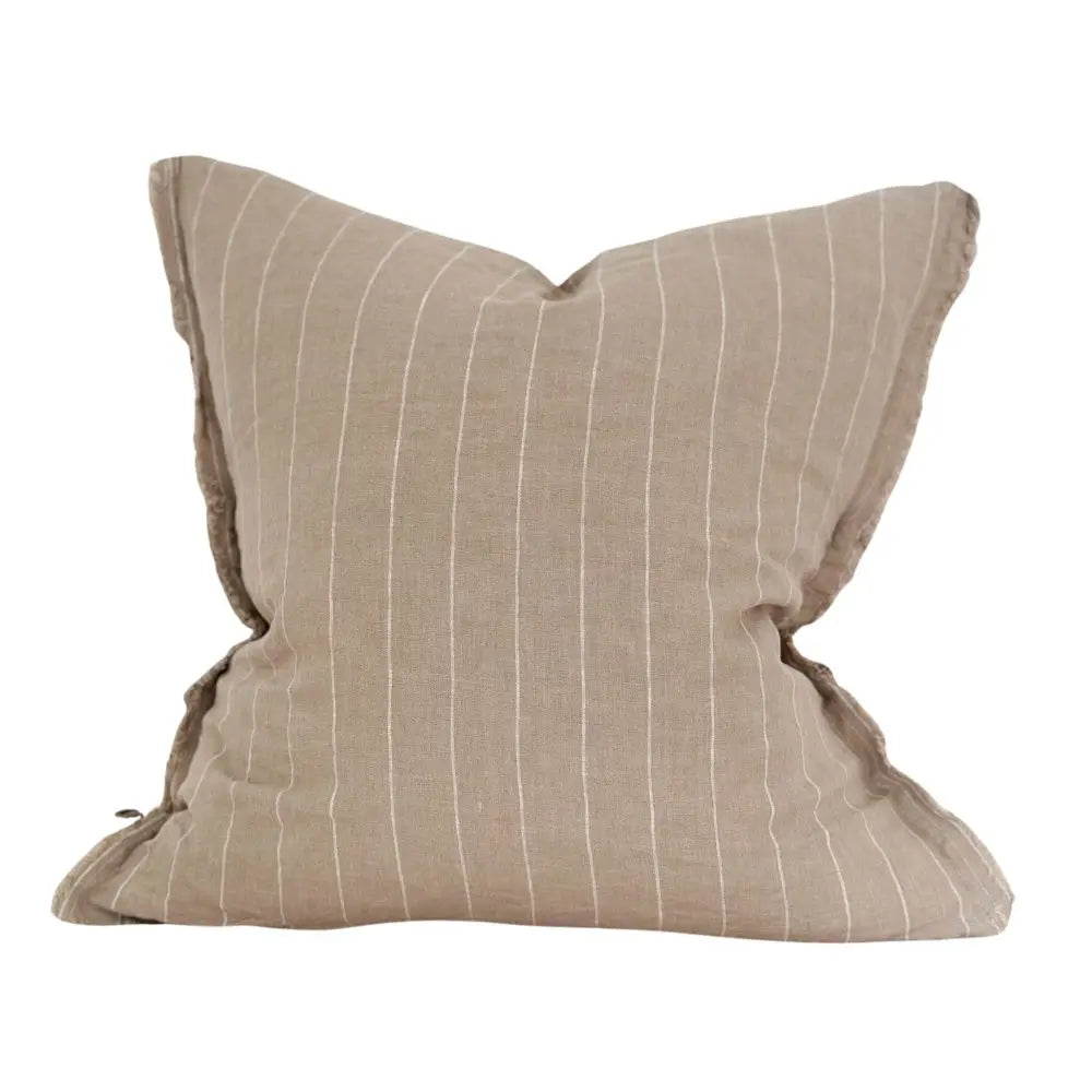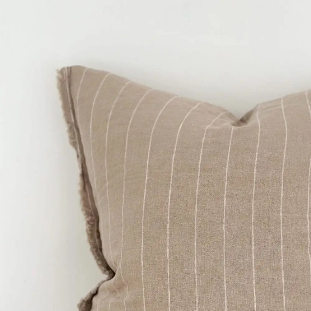 - Introducing our Esmee Beige Stripe Cushion. Our Esmee cushions are made from 100% stonewashed linen and feature a fringed edge – perfect to use as sofa or bed cushions.