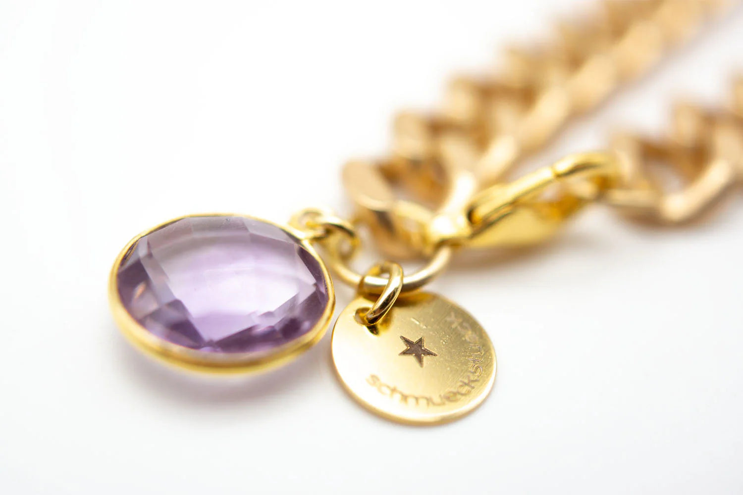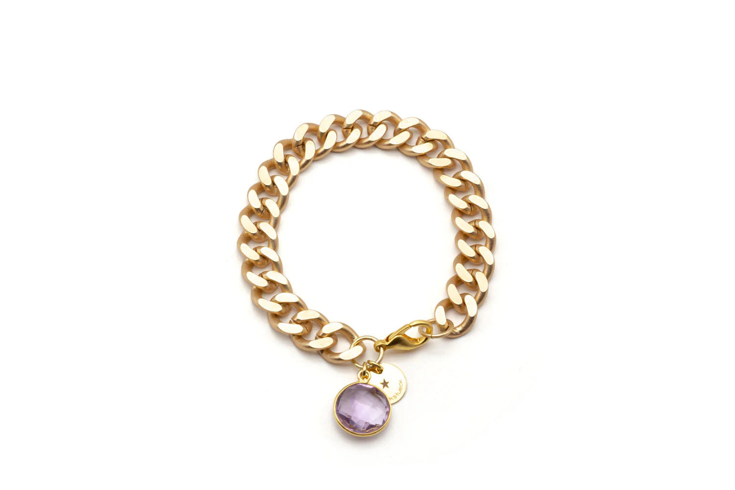 Bracelet made of matte gold-plated brass and chalcedony pendant.