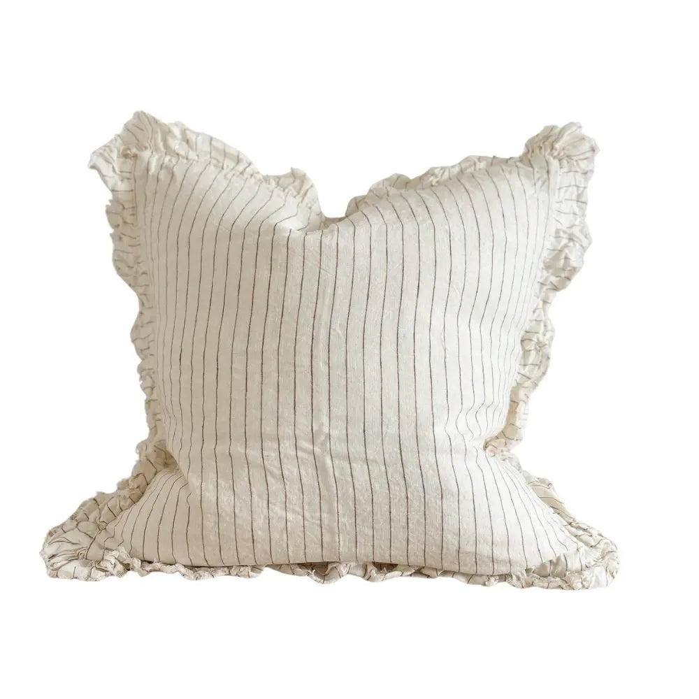 Hallie Rust Pinstripe Ruffle Cushion