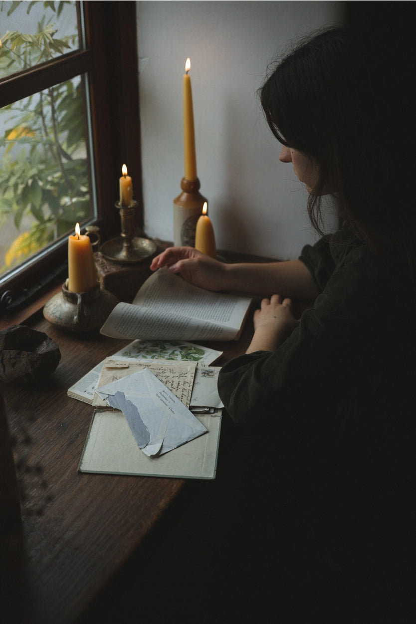 Our classic 8” taper candle in golden toffee, is perfect for adding a poetic atmosphere to your creative work, intimate gatherings, and personal rituals. Their very subtle honey scent is naturally present in the beeswax, and is unobtrusive.