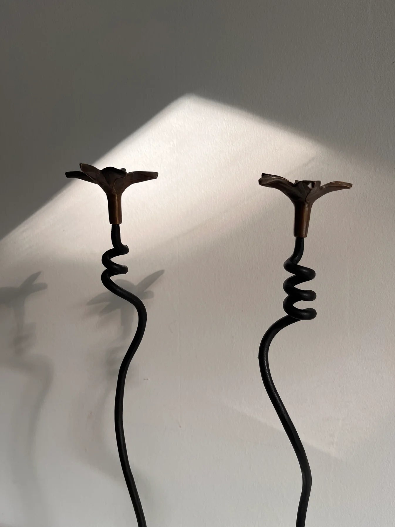 Add a touch of sculptural elegance to your space with the Jasmine Candle Holders.. Crafted through traditional sand-casting techniques, each piece showcases gracefully curved stems and a textured base inspired by organic form. Made from solid cast iron, they bring both durability and rustic charm to any setting. Sold individually.