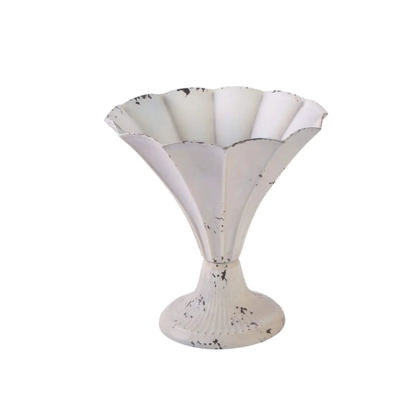 This medium-sized metal fluted vase in an antique white finish adds a refined, vintage touch to any room. The elegant fluted design, paired with the soft, weathered white hue, creates a charming rustic aesthetic. Ideal for showcasing flowers, greenery, or standing alone as a decorative accent, this vase effortlessly complements a variety of interior styles, from classic to contemporary.