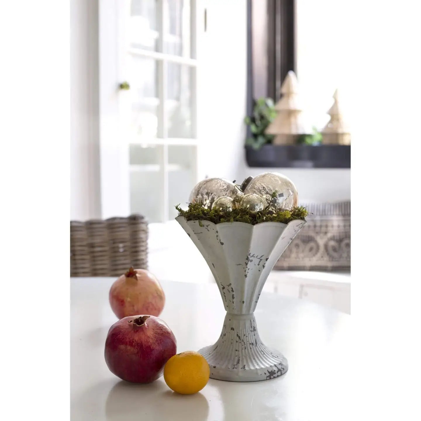Add a touch of vintage elegance to your space with this small metal fluted vase in an antique white finish. The delicate fluted design combined with the soft, weathered white color creates a charming, rustic look. Perfect for displaying flowers, greenery, or as a standalone decorative piece, this vase brings a timeless, sophisticated touch to any room.