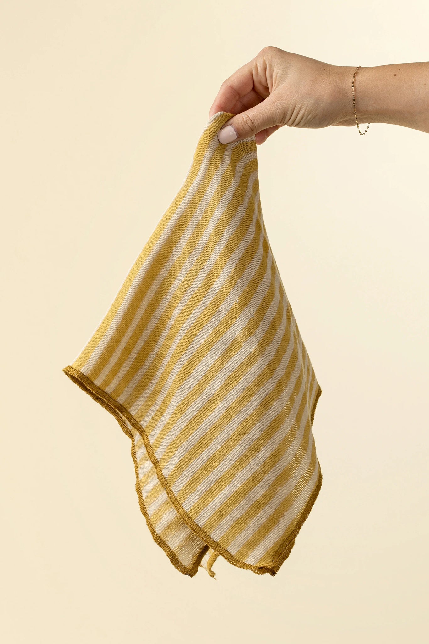 Add artisanal charm to your meals with the Sun Stripe Block Print Napkins, a set of four crafted from sustainable materials. Made in India from soft, double gauze organic cotton, these napkins feature traditional hand block printing for a textural, handcrafted finish. Overlock stitched edges add subtle detail while ensuring durability and everyday ease.